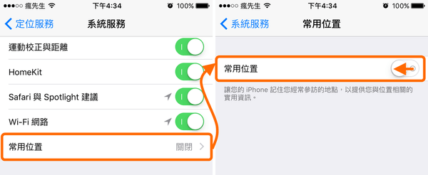 - 如果你不想將目前位置分享給家人或是朋友知道,可到「設定」>「隱私權」>「定位服務」>「系統服務」,關閉「分享我的位置」