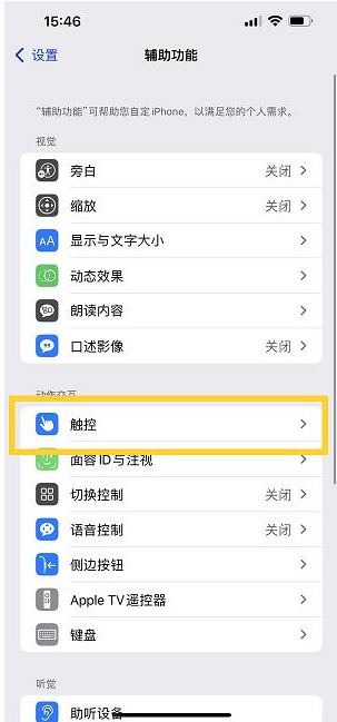 2、在辅助功能中点击【触控】选项。