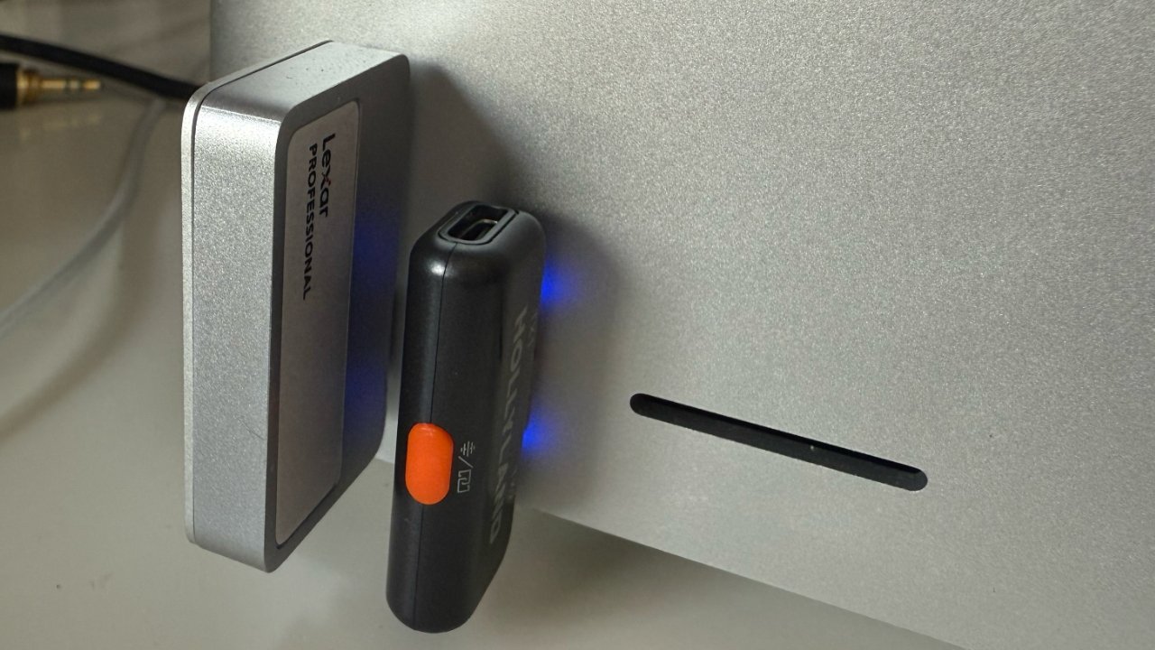 The M4 Max Mac Studio has two 10 gigabit USB-C ports on the front and I've found I'm using them a great deal. I'll plug in an external drive to transfer video footage for editing, for instance, and I'll also connect the receiver for a wireless mic.