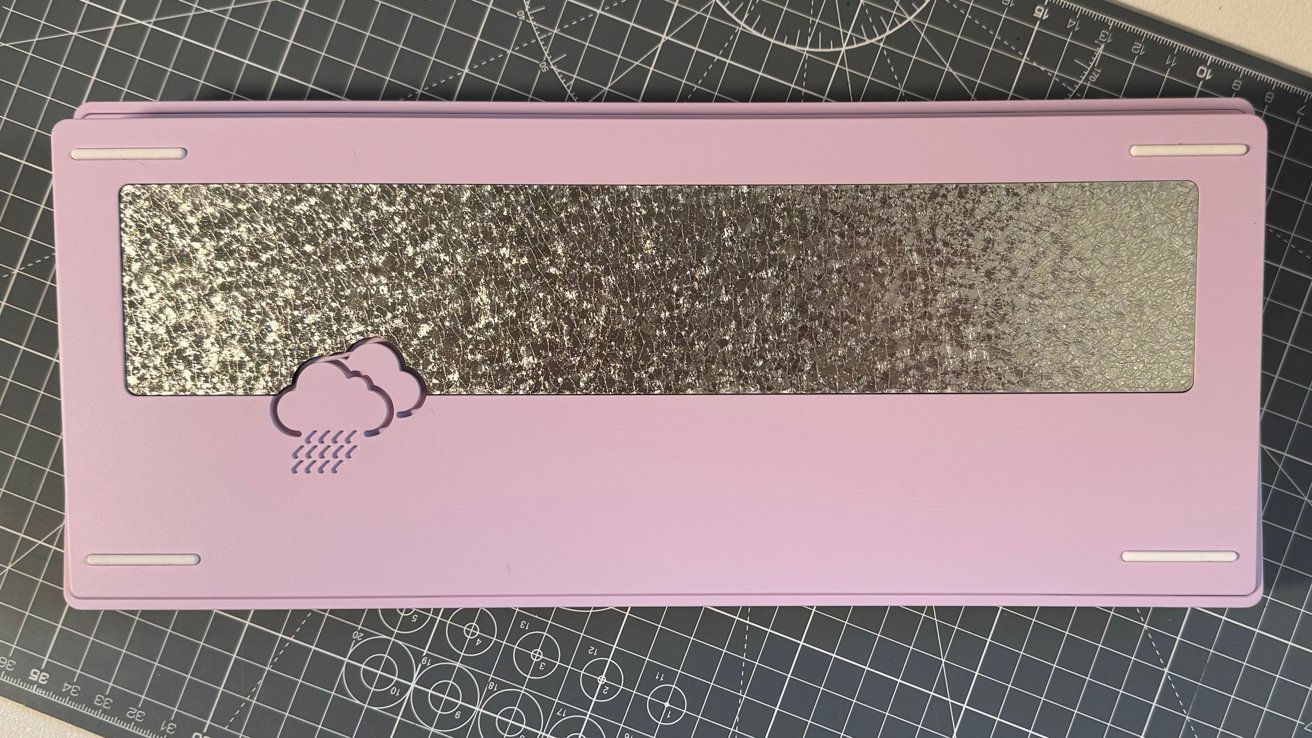 Aside from the keys, the top surface also has a little inset cloud-with-rain logo, so you know it's a Rainy model keyboard.