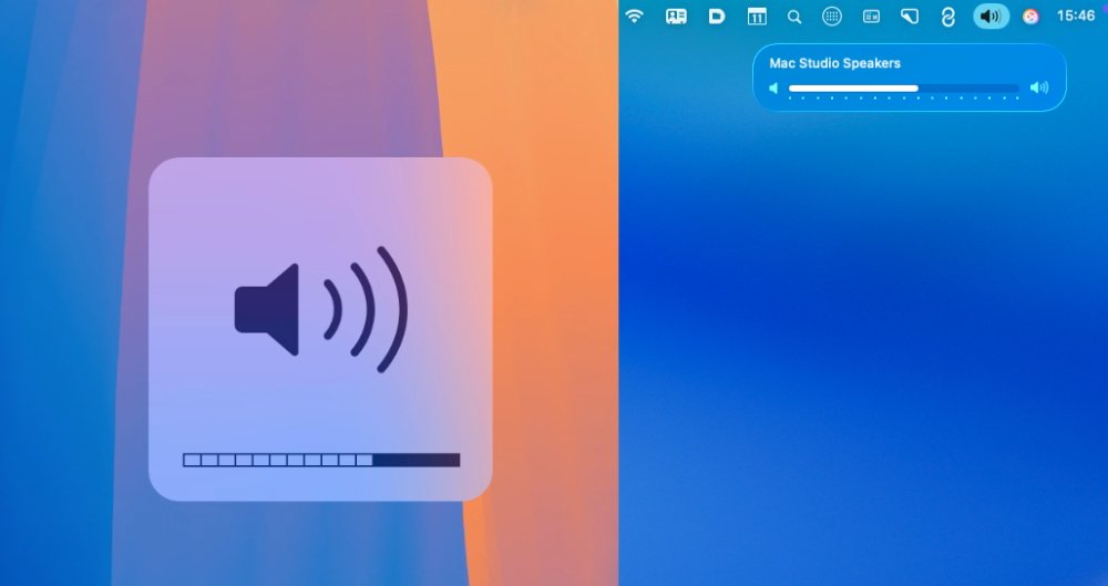 As of macOS Tahoe, if you change the volume on your Mac, the visual confirmation comes with a small, wide icon showing a slider. That icon, though, is positioned up toward the top right of the screen instead of being the large graphic toward the lower middle of the display.