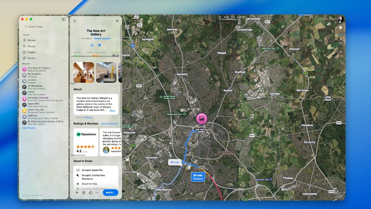 Then there would be a pop up that you had to fill in with the starting place, or the end if you were planning a route from here. It was fine, but it was a bit clunky and easy to dismiss the route-finding dialog.