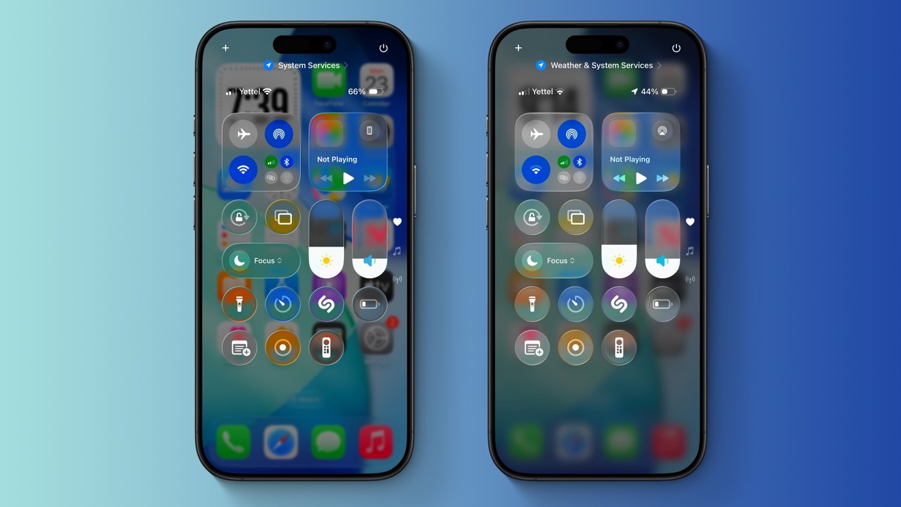 With the second developer beta of iOS 26, Apple tweaked the appearance of the Control Center. It's somewhat darker than it was in the first developer beta, and the Control Center now uses a stronger blur effect.