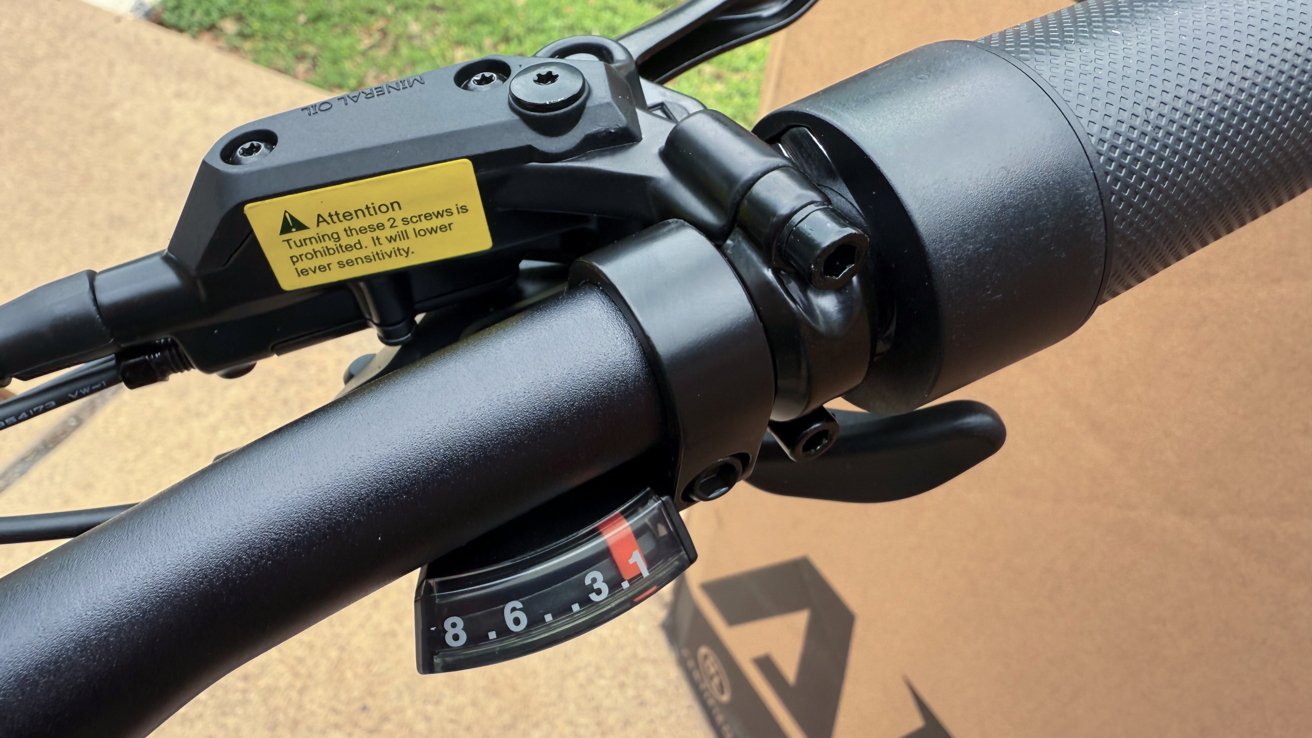 For normal unassisted cycling, there is a Shimano Altus 8-speed shifter, controlled by a slider on the handlebars. Hydraulic disc brakes are also in use, which are handy at high speeds with this much weight in play.