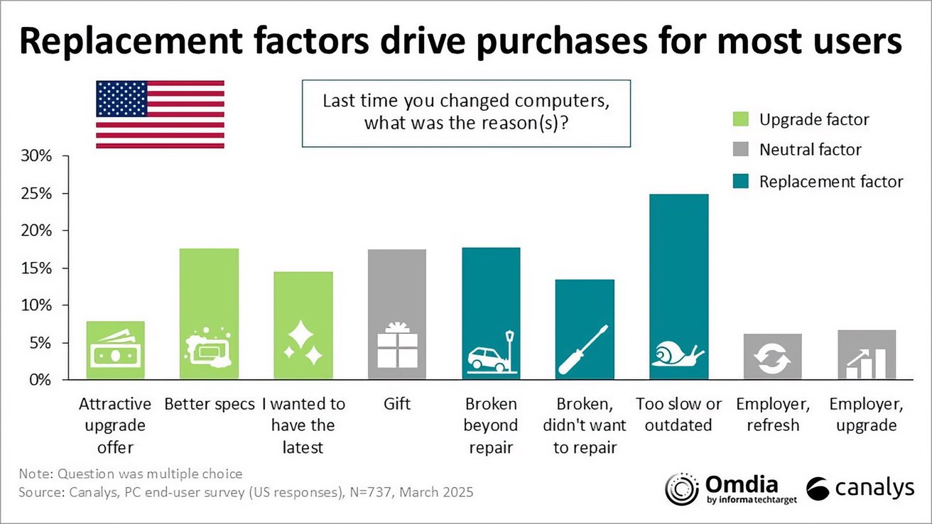 New shipment estimates by supply chain analysts suggest that Apple may have gained computing marketshare in the first quarter of 2025, but the report ignores that shipments aren't sales, and Apple stuffed the channel with hardware ahead of tariff impacts.