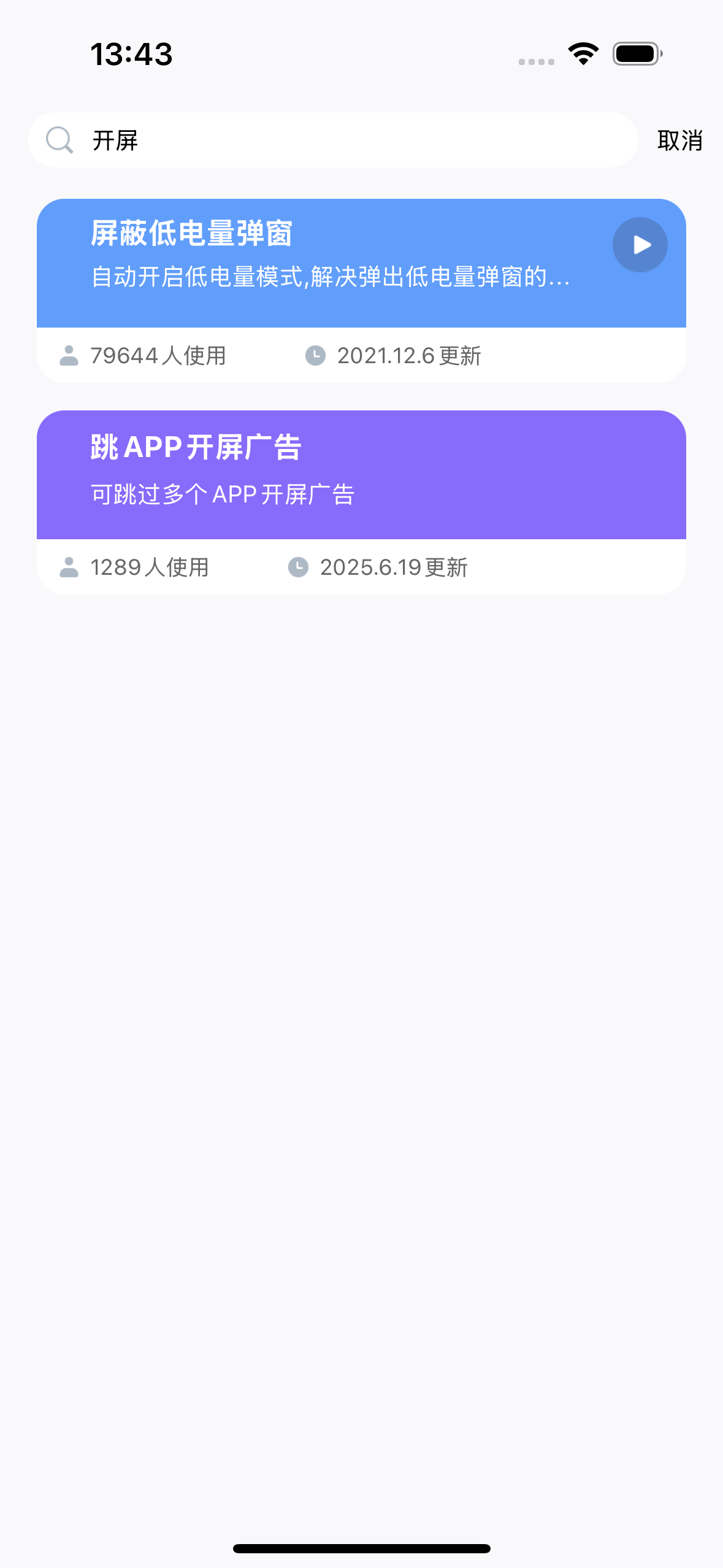 三、点击“i”图标,添加到主屏幕,或直接点击“三角符号”启动对应跳过开屏广告的App。