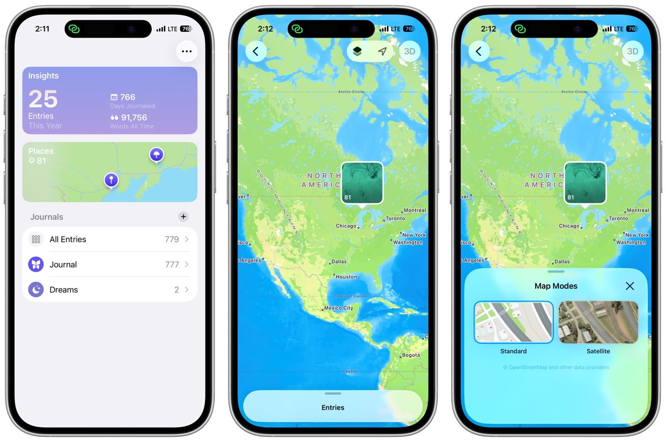 There's also a new map view that shows where you were when you wrote each entry, if location data is available. Maps add context to your writing and help you recall experiences tied to specific places.