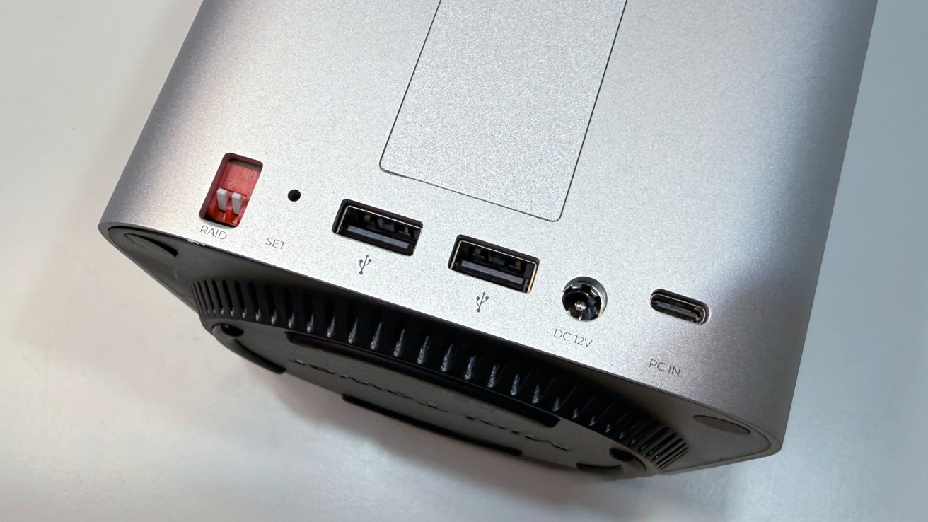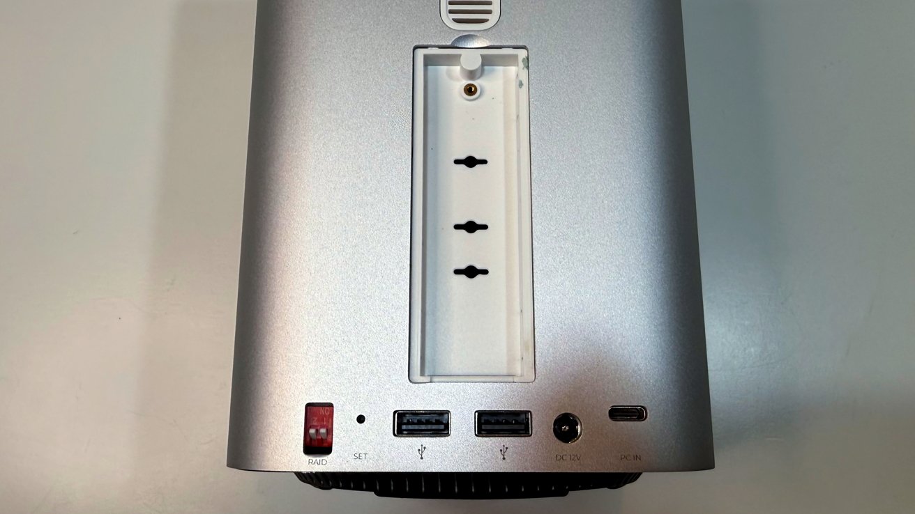 The rear has a cover that hides an M.2 NVMe interface, which can take just about any NVMe drive size. This can be up to 8TB in capacity.
