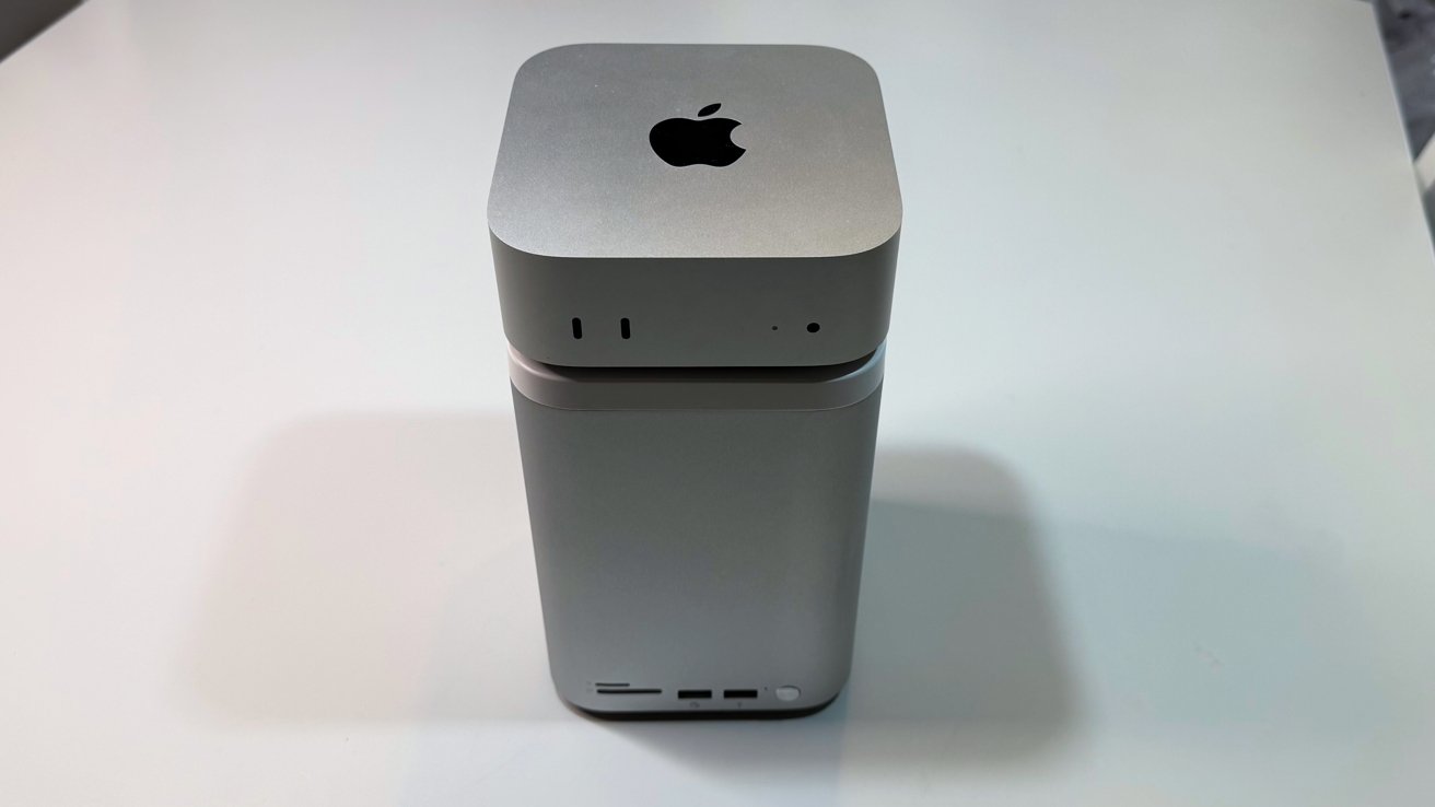 There are differences, such as the white top, but it does fit into the same footprint as a modern M4 Mac mini. There's even a circular "foot" to the storage device, which sucks air in before it is expelled out through the rear vent.