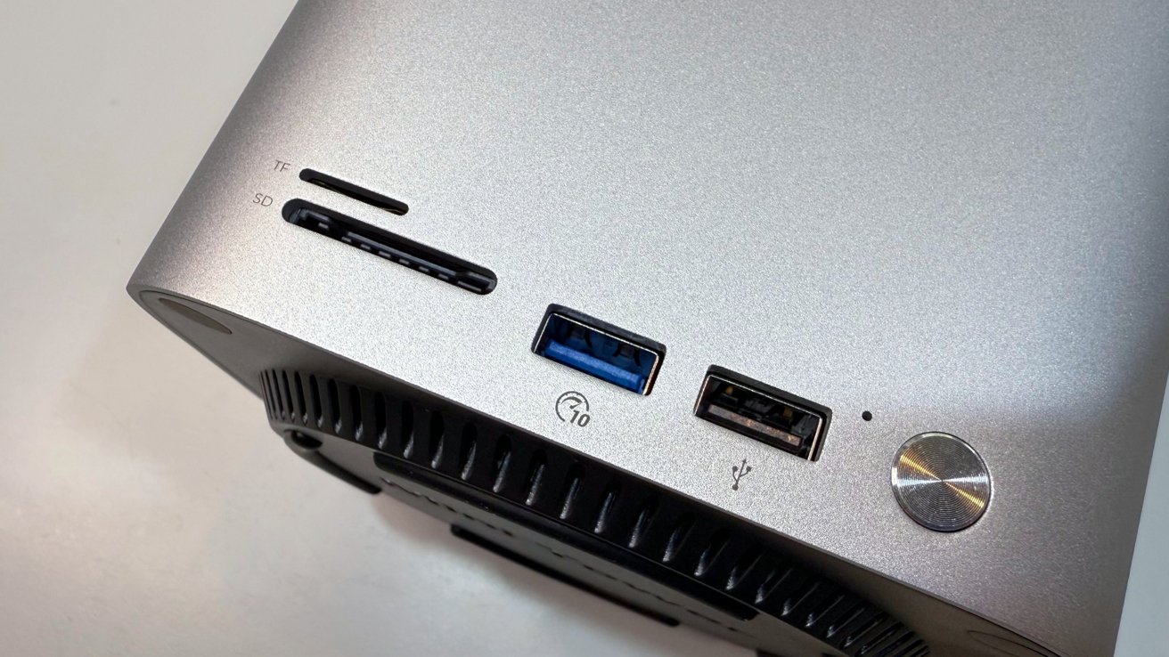 The sole USB-C port, intended as the upstream connection to a nearby Mac mini, means there's only a maximum total bandwidth available of 10Gbps. That is split across all of the ports, memory card slots, and the drives.