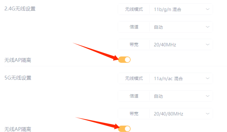 在【无线设置】或【安全设置】中找到 "AP隔离"/"客户端隔离"→ 关闭该功能 → 重启路由器