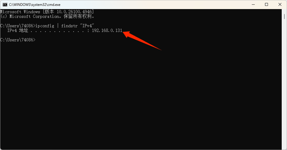 • 电脑:Win+R→cmd→ 执行ipconfig | findstr "IPv4"