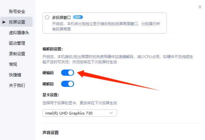 14. 更新后投屏会很卡,并且提示编码性能不足